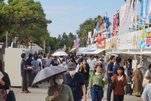 【那覇支社】「県産品、みんなで創る島の価値」をテーマに27日、第47回沖縄の産業まつりが那覇市で開幕した。宮古関係では、菊之露酒造、多良川、浜口水産と伊良部商工会、沖縄長生薬草本社、ティーダオーシャンと宮古島漁業協同組合、浜口水産が共同で取り組む「離島のいいもの宮古島」がブースを構え、それぞれの商品をアピールしている。29日まで。