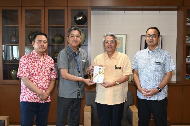OCS(那覇市、大山一社長)が宮古島トライアスロン実行委員会と提携して発行してきたが、今年8月末で提携解消となった「トライアスロンカード」の利用収益金の一部を大会運営協力金として寄付する最後の贈呈式が1日、市役所で行われ、26万691円が贈られた。今回の贈呈でこれまでの累積金額は2156万8909円となった。
