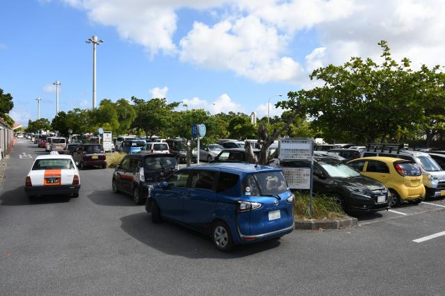 同事務所では空港利用者に対し、日をまたいでの駐車の自粛を求めるとともに、バスやタクシーを利用するよう呼び掛けている。担当職員は「車で来ると止めることができず、飛行機に乗り遅れる恐れもあるので、できる限り公共交通機関を利用してほしい」と訴える。
