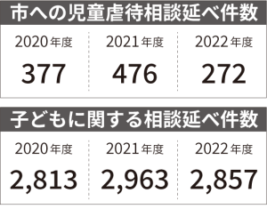 2022年度に宮古島市に寄せられた児童虐待相談の延べ件数は前年度比204件減の272件、子どもに関する相談件数は106件減の2857件だったことがこのほど、市家庭保健課のまとめで分かった。同課では、延べ相談件数は減少しているものの、相談件数は多い状態が続いているとして、関係機関と地域などが連携して児童虐待防止に取り組む必要があるとの認識を示している。