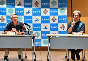 会見で座喜味一幸市長は「持続可能で活力ある地域社会を実現できる。そのほかの地域にとってもモデル事業になると思うので、脱炭素エコアイランド宮古島に取り組んでいきたい」とあいさつした。