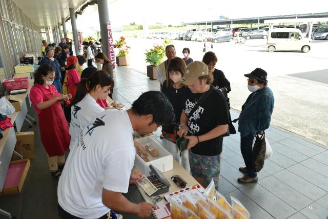 11月16日は「いいいもの日」。県では県産サツマイモの生産振興および消費拡大を目的に制定し、その日を中心とした期間において、県産サツマイモの普及啓発、消費拡大キャンペーンを実施している。これに関連し、宮古島市でも15日、「いもの日ミニイベント」が市役所で開催された。栽培講習会のほか、イモ加工品の展示即売会も行われ、来場した市民が目当ての商品を買い求めていた。