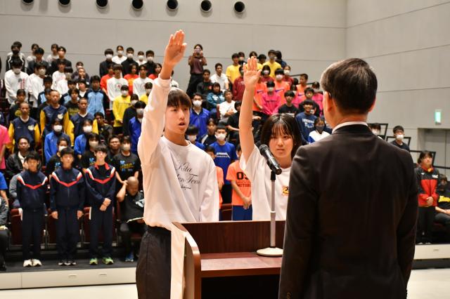 男子47回・女子36回県中学校駅伝競走大会(主催・県中学校体育連盟など)がきょう18日、市陸上競技場を発着点する宮古地区中体連駅伝コースで行われる。開会式が17日、市未来創造センター多目的ホールで開催され、県内6地区の予選を勝ち抜いた出場校が健闘を誓った。女子は午前9時、男子は同10時10分に号砲が鳴らされる。