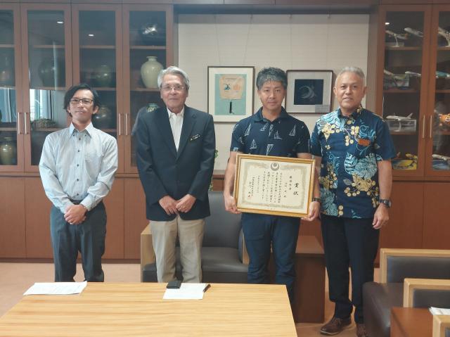 県青年農業者会議の2023年度プロジェクト発表と意見発表が、このほど那覇市で行われ、島内でジャガイモ栽培に取り組む宮古地区就農青年クラブ連絡協議会の田村快さんがプロジェクト発表の部で最優秀賞を受賞した。田村さんは17日、市役所に座喜味一幸市長を訪ね、受賞を報告した。