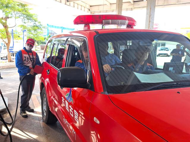 宮古給油所の第三サービスステーション(SS)は21日、災害時対応実施訓練(主催・全国石油商業組合連合会)を同所で行った。ジャパンリスクソリューションの佐藤哲治さんが講師を務め、SSのスタッフらが地震発生時の二次災害防止や停電時での緊急車両への給油などの対応を実践した。