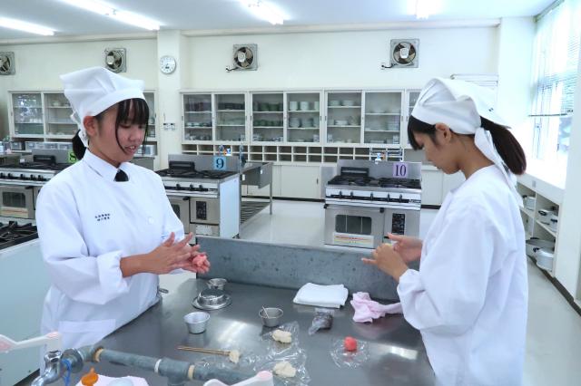 宮古工業高校生活情報科の2年生18人は21日、「食品」の授業の一環で和菓子講習会を実施した。市内で和菓子店を営む小松慶子さんが講師を務め練り切り作りを指導した。