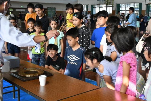 家族で訪れていた深澤佑真君(7)は「磁石が浮いているのがびっくりした。実験が好きなので見に来た。砂の中から貝がらを探すゲームが楽しかった」と笑顔で話した。