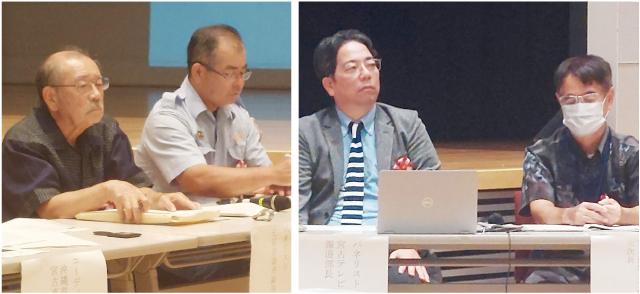 パネリストは元県宮古支庁長・元宮古島市副市長の長濱政治氏、市消防本部の古謝博由消防署長、宮古テレビの奥濱真一郎報道部長、宮古島地方気象台元次長の棚原聡氏、コーディネーターは県宮古事務所の長濱為一所長が務めた。