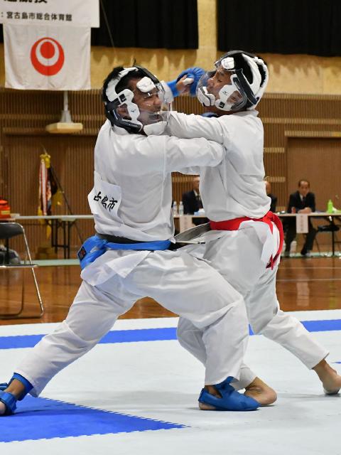 第75回県民体育大会(主催・県体育連盟)の空手道競技は25日、市総合体育館で開かれた。宮古島市は壮年男子形の下地英作と男子個人組手の仲程一織が、それぞれ準優勝する活躍を見せた。宮古島市出身の喜舎場広子(那覇市)は、壮年女子サイで大会3連覇を達成した。