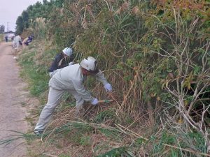 県が11月の第4木曜日を「防風林の日」と定めていることにちなみ、宮古島市「防風林の日」関連行事実行委員会(委員長・石川博幸市農林水産部長)は29日、平良松原地区に整備された防風林帯で、植えられた樹木周辺の雑草を除去する作業を行った。