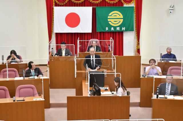 伊良皆光夫村長は体調不良のため、午後の一般質問を欠席した。