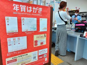 年賀状の受け付けが15日、全国一斉に始まった。このうち、宮古郵便局は「年賀はがき差出箱」を局内に設置。訪れた市民らが次々に年賀状を投函(とうかん)していた。同郵便局では「元旦に確実に届けるために、25日までに投函してほしい」と呼び掛けている。
