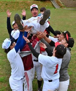 宮古毎日新聞杯第32回全宮古軟式野球大会は17日、市営球場で一般、成年、実年、還暦の4階級の決勝まで行い、全日程を終了した。最多チームが出場した一般級では、西辺が延長特別ルールにもつれる激戦を制し、優勝。成年級はあだん歯科、実年級はファミリー與那覇、還暦級は鏡原OBがそれぞれ制した。
