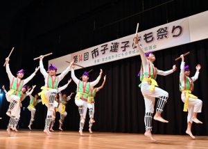 市子ども会育成連絡協議会(野原雅也会長)の「第14回子ども祭り」が17日、市未来創造センター多目的ホールで開催された。新型コロナウイルス感染症の影響で4年ぶりの通常開催が実現したことを関係者全員で喜びながら、舞台では各地域の子どもたちが演舞、ダンス、琴の演奏など、これまでの活動の成果を元気いっぱいに披露した。