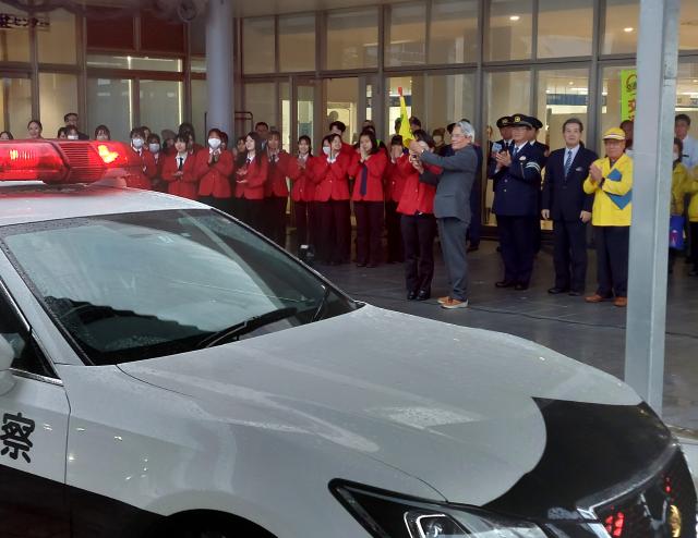 宮古島地区交通安全協会の友利勝一会長が交通安全宣言を行った。式典終了後は車両パレードが行われ、パトカーを先頭に地域住民に交通安全を呼び掛けた。