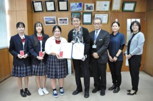 伝達を受け、川上部長は「うれしい。放課後など遅くまで取り組んだ。未経験のことで大変だった」と振り返り、「製パン会社に就職する。自分の店を出すという目標に向け、この経験を生かしたい」と語った。