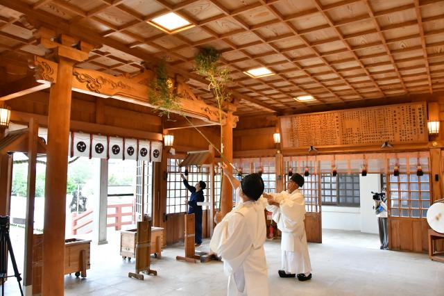 宮古神社は25日、社殿にたまった1年間の汚れを落とす「すす払い」を行った。年末に社殿を大掃除し、新しい年を迎えるための恒例神事で、年の瀬の風物詩となっている。掃除とともに正月に年神様を迎える正月準備の始めともいわれている。