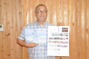 原発被害に苦しむ福島県の人々を支援する「うむい宮古島」(藤井一郎会長)の2024年版笑顔カレンダーが完成し、今月中旬から市内の書店で販売されている。価格は1部500円で、収益は福島の人々や市内の福祉団体などへの支援金として活用される。27日、うむい宮古島の竹井太監事が完成と販売を報告し、多くの購入を呼び掛けた。
