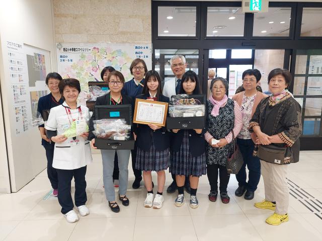 宮古総合実業高校生活福祉科ボランティア部の生徒が15日、県立宮古病院を訪れて、がんと闘う患者に「ハッピーキャップ」を贈った。36個すべてが手作りで、その一つ一つに思いを込めた。生徒たちのプレゼントに岸本信三院長は感謝状を贈り「心温まるプレゼントをありがとう。この帽子は頭を守るという物理的な意味だけでなく、皆さんが作った心づくしが患者さんに響く」と感謝し、社会貢献活動に取り組む生徒たちの姿に目を細めた。