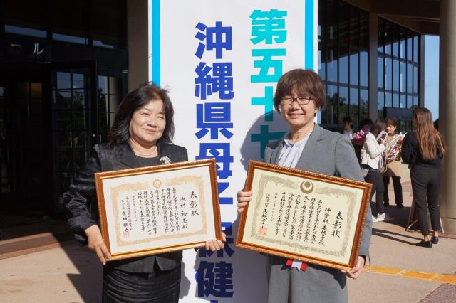 表彰を受け、仲宗根さんは「大きな賞をいただき、とてもうれしい。職場の保健師を代表していただいたので、みんなの励みになる。今後も、みんなで母子保健や児童福祉の向上にまい進していきたい」と喜びを語った。