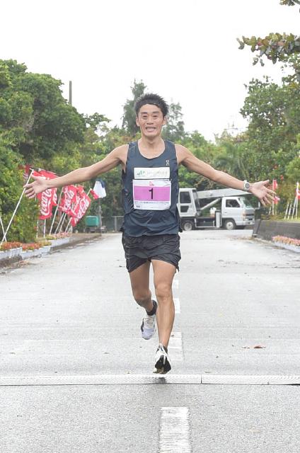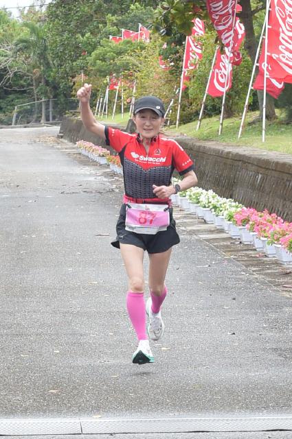 50キロの部は、午前11時に宮古特別支援学校をスタートし、ゴール地点の下地公園を目指した。優勝は山谷良登(53)=東京都=でタイムは3時間27分57秒。女子は谷中千華(25)=宮古島市=が4時間18分24秒で制した。