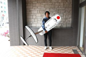 今年開催されるパリ五輪から正式種目となる「カイトボード」での出場を目指す岩城拓海さん(28)が22日、宮古毎日新聞社を訪れ、活動資金への協力を呼び掛けた。岩城さんは4月中旬から下旬にかけて予定されているフランスでの国枠獲得選考レースに出場するため現在、トレーニングに励んでいる。