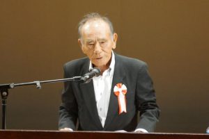 【那覇支社】第44回県老人の意見発表会(主催・県老人クラブ連合会)が24日、金武町立中央公民館で開かれ、県内各地区の6人が発表した。宮古地区からは、宮古地区老連代表として、来間老人クラブ会長の保良榮男さんが登壇し、優秀賞を受賞した。
