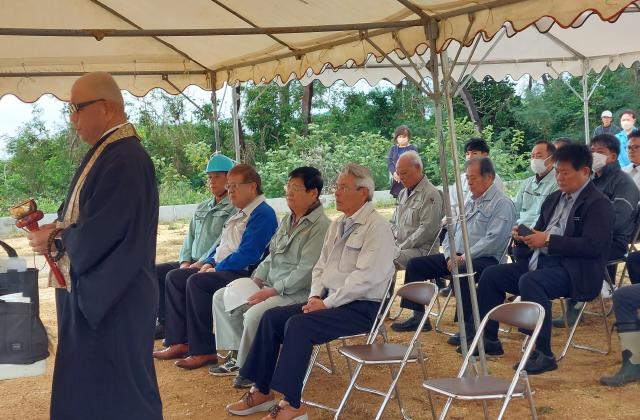増大する水需要に対応するため市は平良野原と城辺友利に新たな配水池を建設する。配水池は合わせて3000立法メートル規模で来春完成する。宮古島駐屯地等周辺水道整備事業で防衛省補助金を活用した。5日、それぞれ現地で起工式があり、座喜味一幸市長や施工関係者が建設工事の安全を願った。