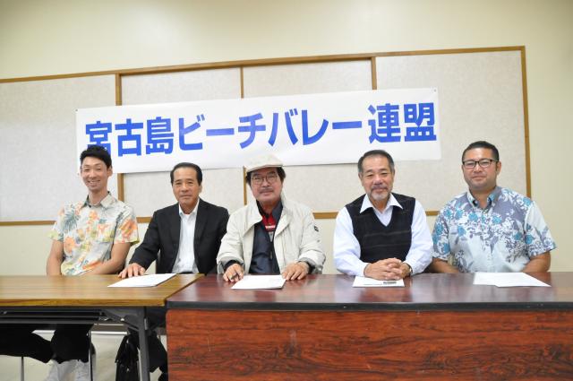 宮古島ビーチバレー大会2024が6月1、2の両日、下地与那覇前浜ビーチで開催される。男女混成(男女各2人)4人制のみで、予選グループ戦で各リーグ上位と下位各2チームを決め、上位・下位のトーナメントを行う。申し込みは8日から5月3日まで受け付けるが、72チームに達し次第締め切る。大会を主催する宮古島ビーチバレー連盟の下地晃会長らが8日、宮古島観光協会で会見し、多くの出場を呼び掛けた。