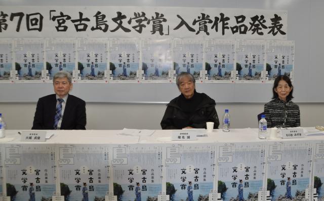市文化協会(饒平名和枝会長)は9日、市役所で会見を開き、第7回宮古島文学賞の最終選考会の結果、一席に長崎県在住の伊佐山昂(のぼる)さん(66)の作品「水平線」を選出したと発表した。二席には富山県在住の佐藤陽翔(はると)さん(25)の「爆(は)ぜる。」、佳作には徳島県在住の半崎輝(ひかる)さん(63)の「夏の消印」が選ばれた。授賞式は3月2日にホテルアトールエメラルド宮古島で行われる。