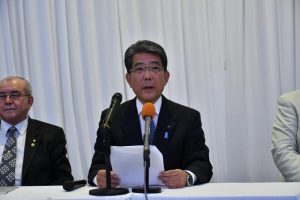 國仲昌二氏は12日、市内ホテルで支持者らを集め、出馬表明会見を開いた。市議会与党議員や支持者らが見守った。國仲氏は「これまで県議会で取り上げ、解決したもの、現在進行形で取り組む課題もある。あと4年間、県議として働きたいと強く決意している。県議選は市長選に直結する大事な選挙」と話し、3年前の市長選と同じく「ワンチームみゃーく」で再選を目指す。