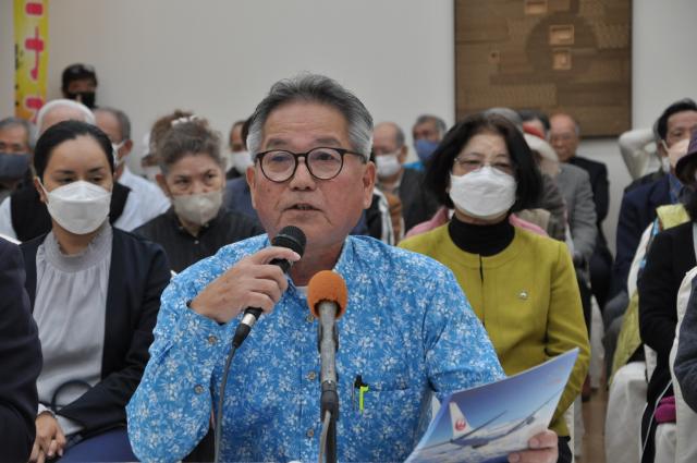1期目の実績として、浄化槽溜枡(ためます)設置基準の廃止、下水処理施設整備費用の負担軽減、電気料金支援策を強調。玉城デニー県政については「辺野古基地移設問題にしか取り組んでいない。行政疲労を起こして死に体になっている」と批判した。