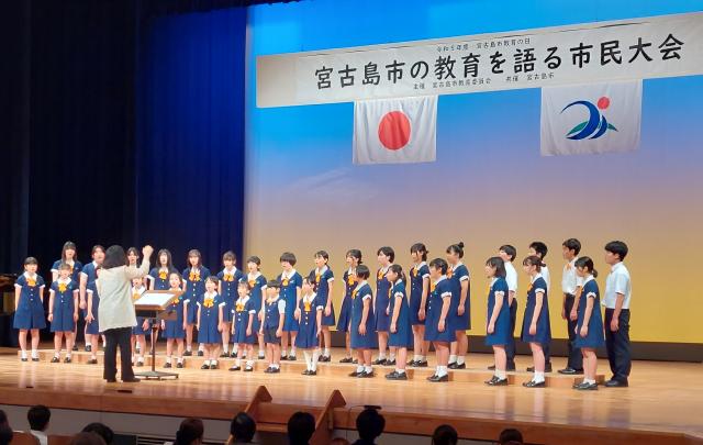 大城裕子教育長は「将来予測が困難な時代において、未来に向けて自らが社会の創り手となり、問題解決などを通じて持続可能な社会を維持・発展させていく人材の育成が求められている。また多様な個人それぞれが幸せや生きがいを感じるとともに地域や社会が幸せや豊かさを感じられる教育を実現していかなければならない。調和と協調に基づくウェルビーイングを目指して子供たちを育んでいきたい」とあいさつした。