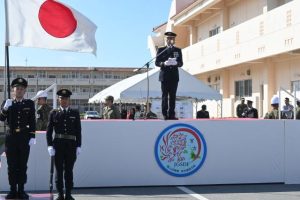 陸上自衛隊宮古島駐屯地(司令・比嘉隼人一等陸佐)の創立5周年記念行事が18日、上野野原の同駐屯地で行われた。西銘恒三郎衆議院議員、下地康教県議会議員、平良敏夫市議会議長ら来賓や、隊員の家族、地域住民らが参加し記念式典や空包を使用した訓練、車両の体験試乗、演奏会などが実施された。施設の一部は一般に開放された。