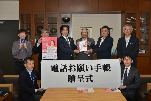 NTT西日本沖縄支店(古江健太郎支店長)は26日、社会貢献活動の一環として作成している「電話お願い手帳」の2024年版を市と市社会福祉協議会(野原勝会長)に寄贈した。古江支店長は「地域の皆さんが安全安心に暮らせるよう私たちも貢献していきたい」と座喜味一幸市長らに目録を手渡した。手帳は市と社協を通して希望する当事者に配布される。