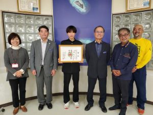 【多良間】第19回全宮古中学校新人駅伝競走大会で個人区間1位を獲得した栁岡碧輝さん(多良間2年)がこのほど、村教育委員会に池城三千雄教育長を訪ね、結果を報告した。栁岡さんは「(村から中体連渡航宿泊費の)補助をいただき、練習の成果を出すことができた。1位を取ることができてうれしかった」と語った。