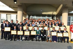 2023年宮古島警察署長感謝状の贈呈式が28日、同署で行われ、23年中に警察業務に積極的に協力した14団体、48個人に喜屋武一郎署長から感謝状が贈呈された。贈呈式には宮古地区防犯協会の前川尚誼会長らが来賓として出席した。