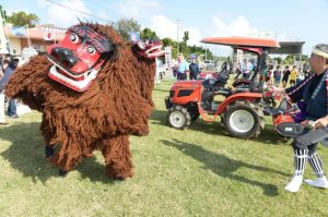 公民館を清めると、集落を一周し無病息災と五穀豊穣を祈願した。その後、公民館前の広場に移動し、獅子を囲みながらクイチャーを踊った。集落内を回った後、住民が最近購入したトラクターを清めた。