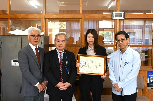 日本教育公務員弘済会(日教弘)沖縄支部(上地弘志支部長)の教育実践研究論文優良賞を7人の教諭が受賞した。受賞したのは狩俣結奈さん(北小)、宮国康智さん(下地小)、濱川史也さん(上野小)、五條晶さん(東小)、平良優さん(伊良部島小)、森陽平さん(宮古特別支援学校)、下地勇也さん(同)。このうち、北小学校(砂川修校長)で8日、表彰式が行われ、上地支部長から同校の狩俣教諭に表彰状が手渡された。