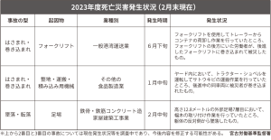 同署管内では1999年から2022年までの24年間で10件発生。これは2年半に1件のペースで発生したという。しかし、今年度は3件も発生している。要請で井上署長は「ゆゆしき事態。労働災害を個別に見ると基本的な安全管理の取り組みが徹底されておらず、安全衛生管理体制がおろそかになっている状況が懸念される」と指摘した。