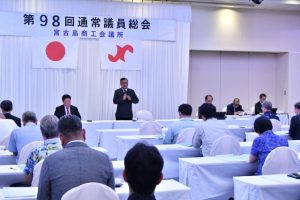 宮古島商工会議所(根路銘康文会頭)の第98回通常議員総会が28日、市内ホテルで行われ、新たな特産品づくりへの研修など島内の製造業者の支援強化などに取り組む製造業部会を新設する定款変更、2024年度の事業計画案、収支予算案を原案通り承認した。スローガンには「島内循環型経済の構築へ」を掲げ、地元企業の伴走型支援とデジタル化対応の推進で幅広いサービスの提供を目指す。