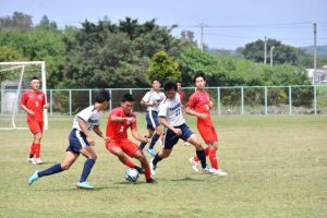 全国大会常連の強豪校・米子北高校サッカー部(中村真吾監督、鳥取県)が1日、初の宮古合宿に訪れ宮古高校サッカー部(北川敏之監督)と練習試合を行った。25分ゲーム3本を実施後、宮高のゲームキャプテン菅浪琉仁さん(新3年)は「初めて県外の強豪チームと対戦し、どれぐらい強いのか知ることができて良かった」と語った。