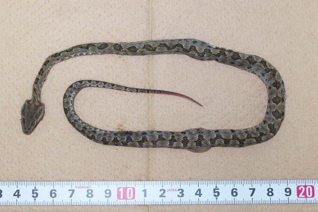 平良港で見つかったサキシマハブの死骸(県提供写真)