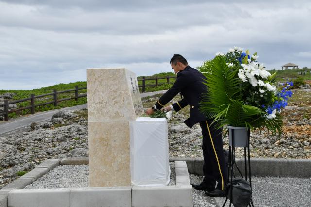 陸上自衛隊の多用途ヘリコプター「UH60JA」の墜落事故の献花台がこのほど、伊良部佐和田の白鳥西公園に建立された。事故発生から1年を迎えた6日、関係者らが集い、犠牲者10人に哀悼の意を表した。 建立したのは県防衛協会、県隊友会、県自衛隊家族会、宮古地区自衛隊協力会の4団体で構成される「黒鷹(たか)の勇士」建立委員会。白鳥西公園は事故現場を見渡せる場所にあり、市民らが哀悼の意を表することができるよう献花台を設置した。