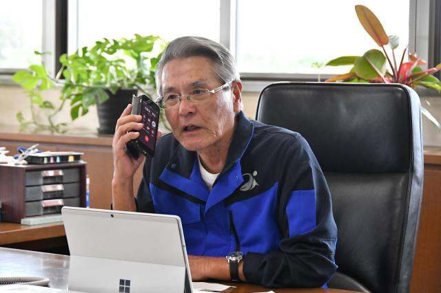 今回は、座喜味市長と伊良皆村長と連絡が取れない事態を想定し、初めて嘉数登副市長、運天宏和副村長との訓練も行われた。