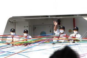 宮古総合実業高校(千葉直史校長)の海洋科学科3年生11人が19日、40日間の遠洋航海実習へ出発した。平良港第二埠頭(ふとう)で乗船式が行われ、同科の下級生が「海邦丸スタンバイ」を披露して実習生の航海の安全を祈願した。