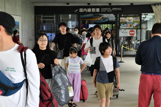 2024年の大型連休が27日、始まった。5月6日まで最大10連休となる。宮古空港と下地島空港の到着ロビーには多くの観光客や帰省客が次々に姿を見せ、出迎える家族やホテル、レンタカーの関係者でにぎわった。期間中の予約状況は前年からほぼ横ばい。ピークは下りが初日の27日、上りは最終日の5月6日。