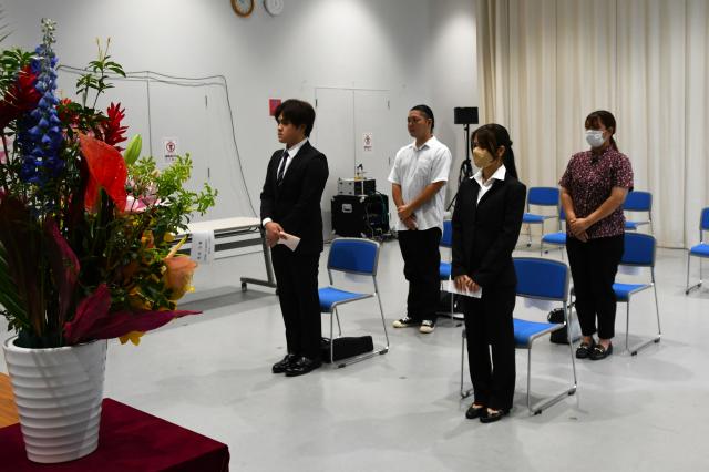 小田原短期大学(上野奈初美学長)保育学科通信教育課程宮古島スクールの入学式が28日、市未来創造センターで行われた。式では、入学した4人が上野学長や市こども家庭局の幸地幹夫局長ら関係者の祝福を受けた。新入生代表の伊波琉花さんが「向上心を持って日々努力していく」と決意を示した。