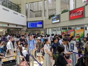 最大10連休となった今年の大型連休は6日、最終日を迎え、宮古空港はUターンラッシュのピークとなった。南国の自然を満喫した観光客や里帰りした人たちが、大きな荷物と思い出を土産に帰路に就いた。