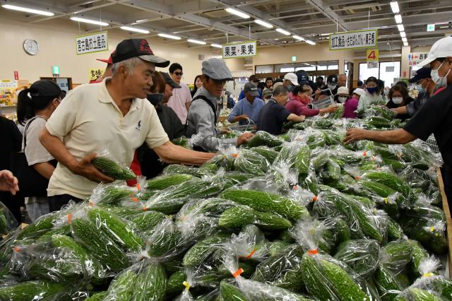 5月8日の「ゴーヤーの日」にちなんだ即売会(主催・宮古地区ゴーヤーの日実行委員会)が8日、JAファーマーズマーケットあたらす市場で行われた。島産ゴーヤーのPRとともに、市民の夏バテ防止にたくさん食べてもらおうと、1袋(約600グラム)100円と安価設定のゴーヤーが約2000袋準備され、大勢の市民が「100円はうれしい」と買い求めていた。